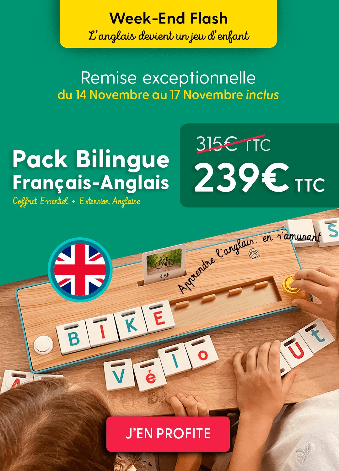 Déjà inclus dans le coffret : 30 cartes mots, 45 pavés lettres, 3 cartes histoires, 1 carte activité, 2 objets personnalisables.