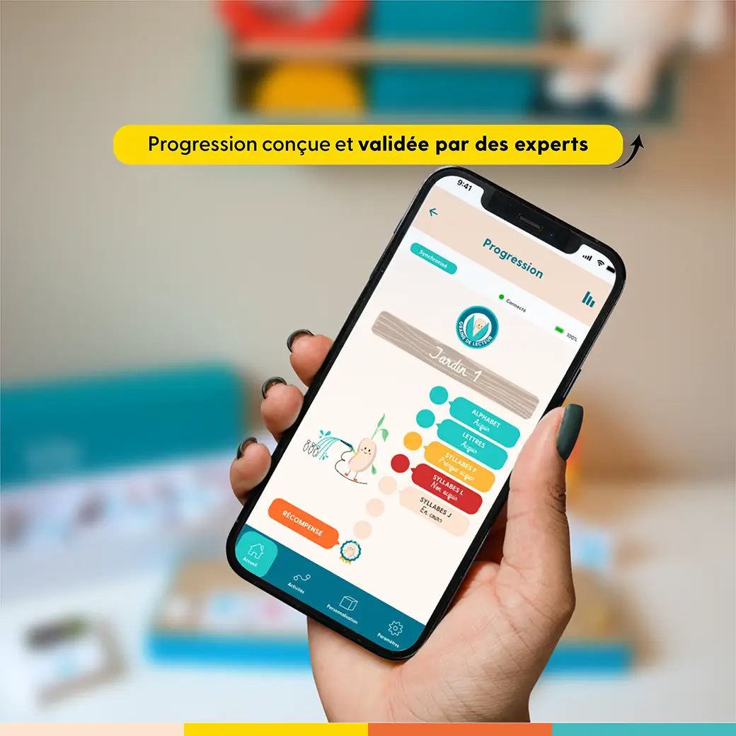 Son apparence matérielle simple et intuitive est pleinement respectueuse du cerveau des plus jeunes et se place comme une alternative intelligente aux applications numériques. Comme le recommande l’OMS, on limite les écrans avant 5 ans ! 😉