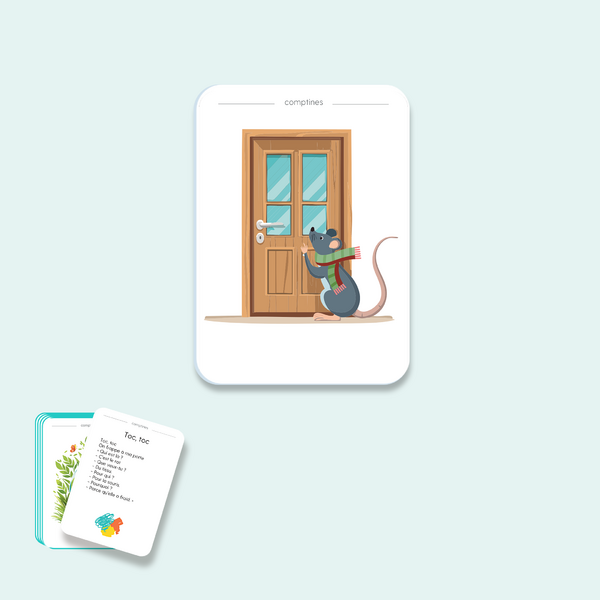 Offrez-leurs une immersion joyeuse dans l’univers des comptines avec ce pack de 20 cartes. Pensé pour accompagner les premières étapes de l’apprentissage du langage, il développe la conscience phonologique, l’articulation, le vocabulaire et la mémorisation grâce à des jeux de sons, des comptines à gestes et des structures variées. Un outil complet, ludique et sans écran, idéal pour éveiller le langage en douceur.