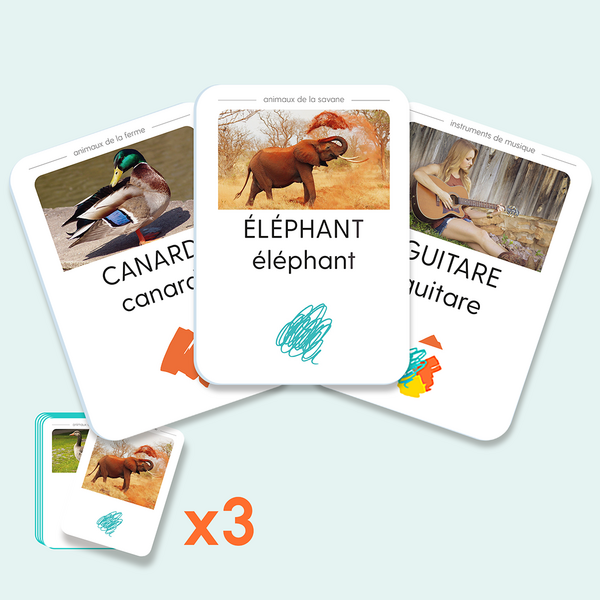 10 cartes La Ferme • 10 cartes La Savane • 10 cartes Instruments de musique